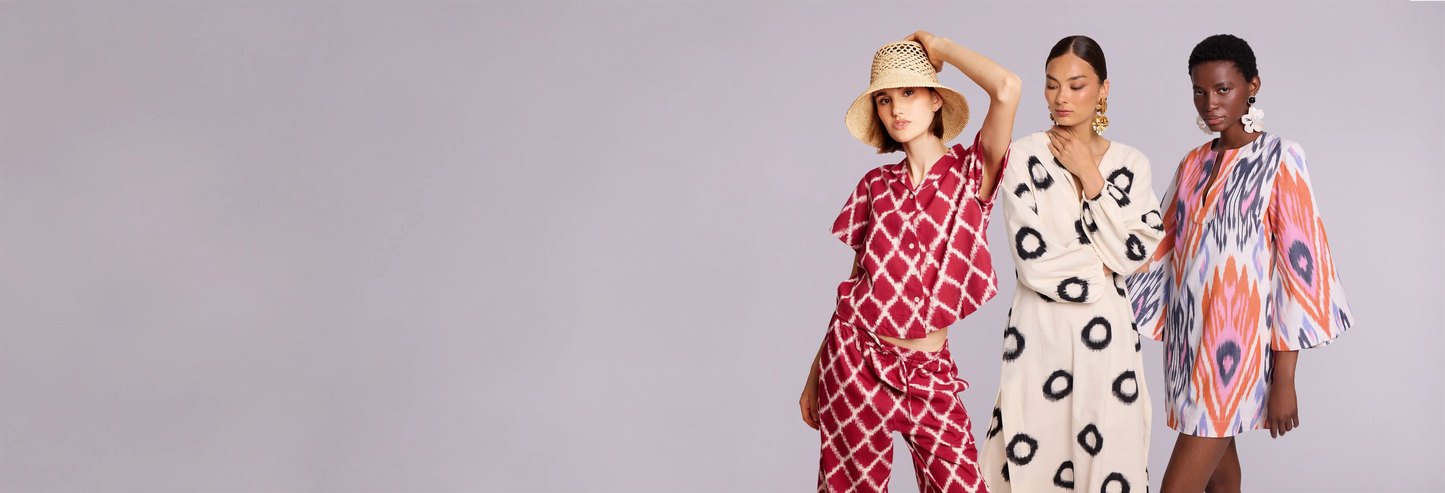 A curated selection of discontinued styles from past collections. From hand-embroidered kimonos and flowing kaftans to timeless resortwear and pyjamas, each piece is made in natural fabrics with artisanal techniques like hand block printing and traditional weaving.