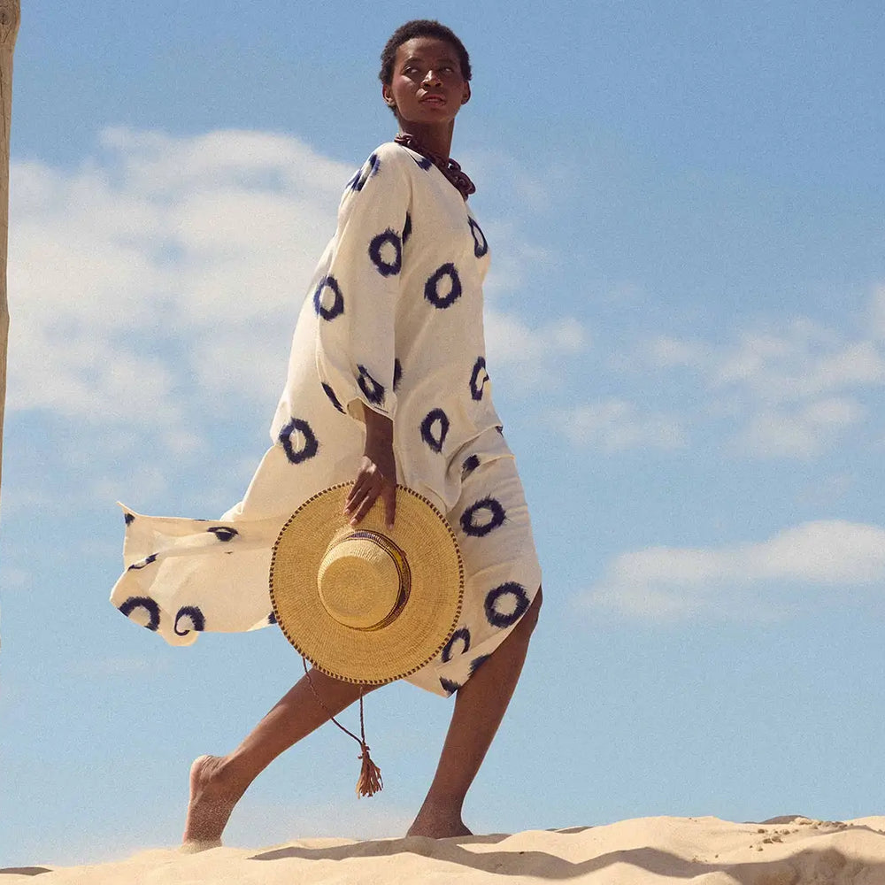 Step into a world of rare beauty with KLEED’s discontinued kaftans, offered only through our Summer Sale. Made in hand-loomed ikats, block-printed cottons, and other unique artisan fabrics, these kaftans are timeless expressions of craftsmanship. Many are finished with hand embroidery and reflect our deep commitment to slow fashion. These styles are no longer in production — making each piece a one-of-a-kind treasure from our design archives.