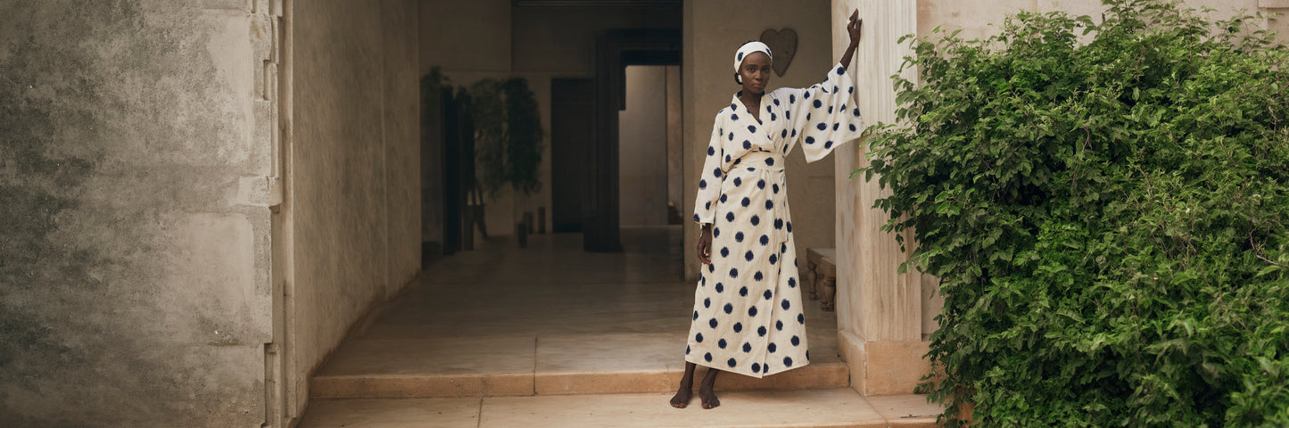 Explore a rare selection of discontinued kimonos from KLEED’s past collections — now available at special Sale prices. Each piece is artisan-made in small quantities using hand block printing, embroidery, or natural silk and cotton fabrics. These limited-edition kimono robes reflect our commitment to slow fashion and thoughtful design. Once part of our seasonal stories, now your last chance to own a one-of-a-kind look — forever out of production
