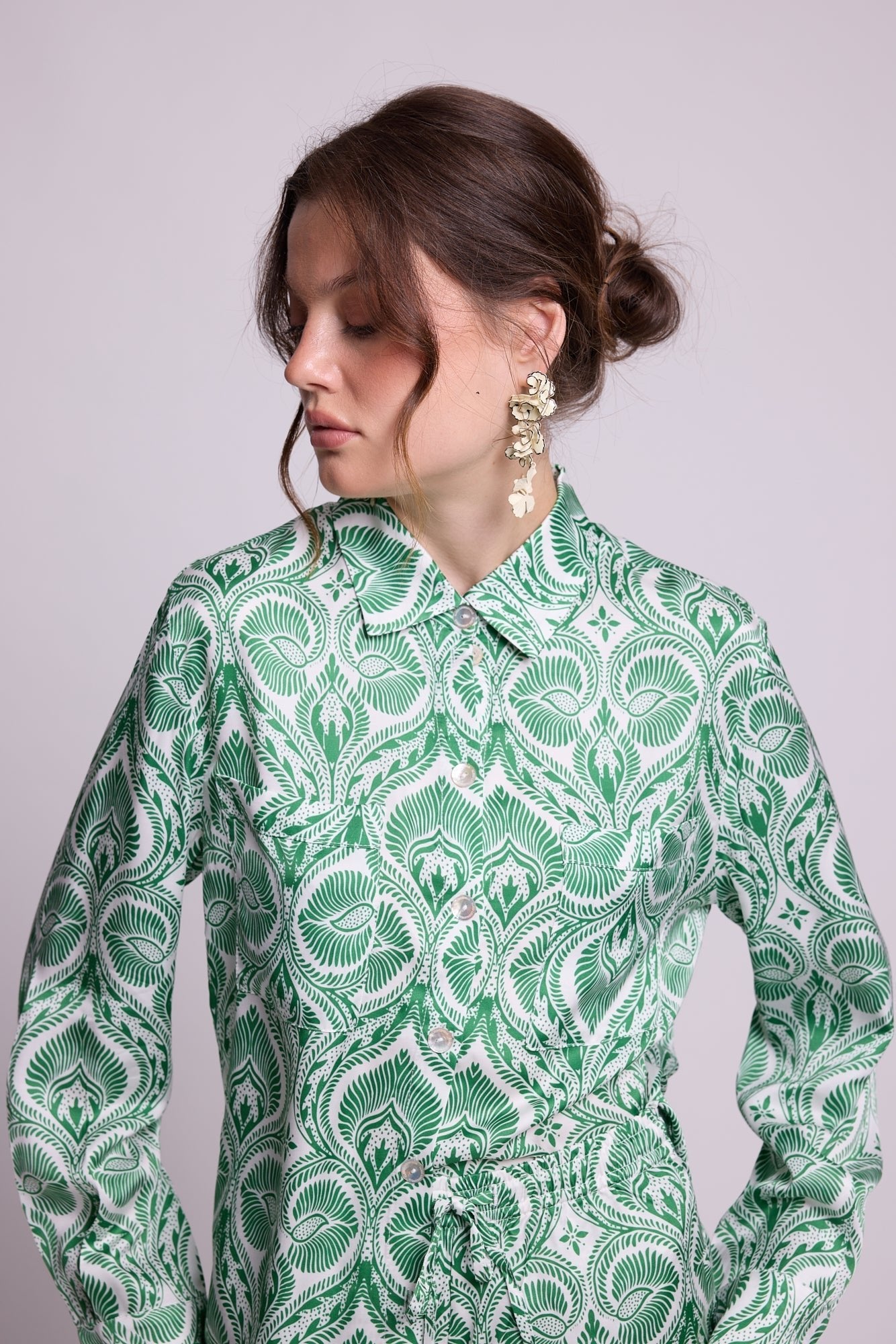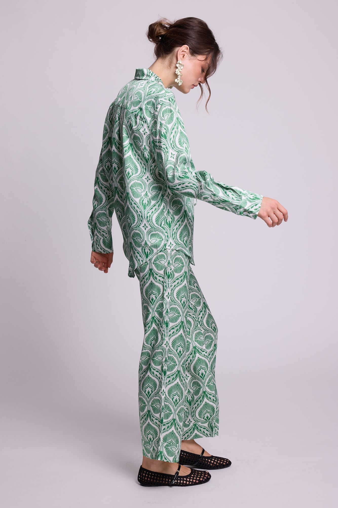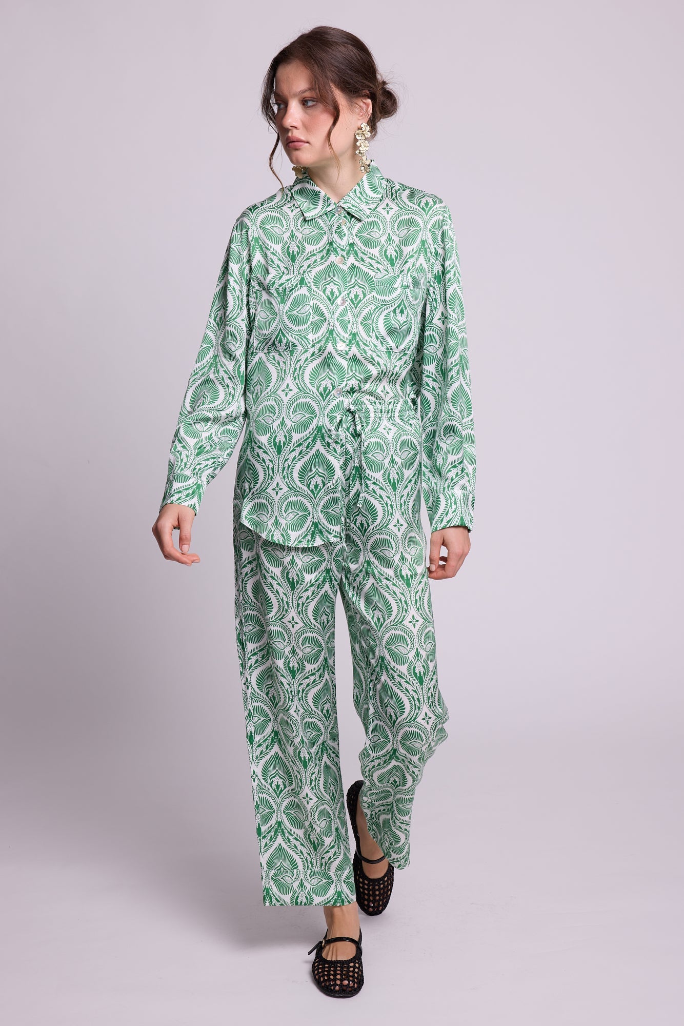 Infuse your wardrobe with a touch of whimsy with KLEED’s 100% Viscose Green Cornucopia Print Set. Made from ultra-soft, breathable viscose, this two-piece ensemble is designed for maximum comfort and elegance. The eye-catching cornucopia print, featuring a vibrant palette of greens and rich hues, brings a playful, artistic flair to your loungewear, making it perfect for both relaxing at home and casual outings.