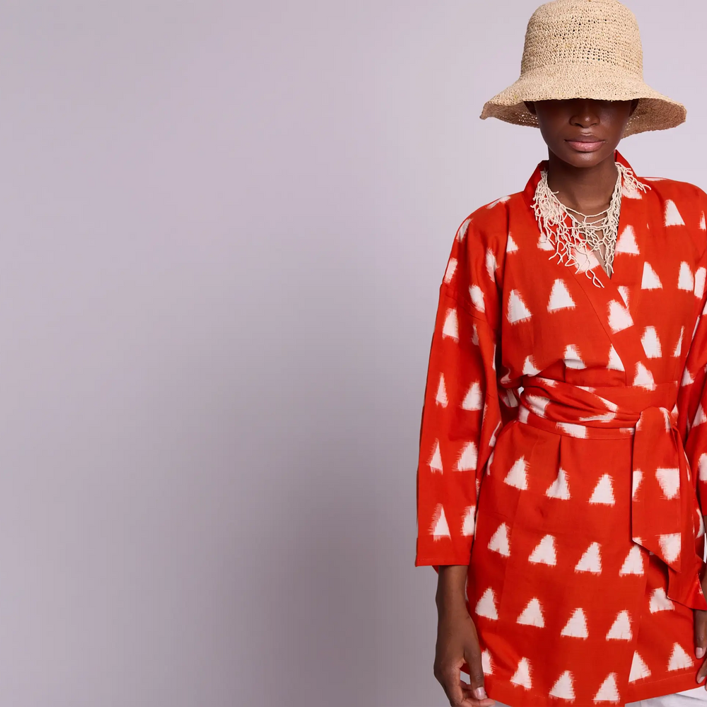 Light, effortless, and handmade in ikat. Our short kimonos are perfect for the beach, summer lounging, or layering with style — your new slow fashion essential.